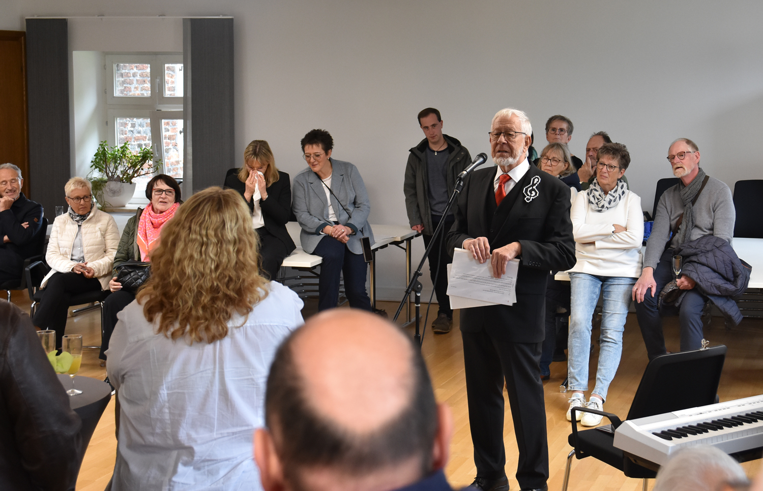 Der stellvertretende Bürgermeister Stefan Sablowski würdigte Rolf Pester ebenfalls für dessen kulturellen Verdienste in Issum. Der Geehrte freute sich über viele Vertreter aus Vereinen und Einrichtungen. Nicht wenige kennen Pester auch noch als Lehrer. Dabei steht der emsige Musicus eigentlich nur ungern im Mittelpunkt. Neben vielen Auszeichnungen gehört Pester zu den wenigen, der aufgrund seines herausragenden ehrenamtlichen Einsatzes für die Musik den Titel „Kantor“ tragen darf. In den 60 Jahren seit 1965 organisierte Pester 130 große Konzerte, in der Regel zwei pro Jahr, die Kantorei begleitete regelmäßig Gottesdienste, auch Theaterstücke brachte er mit seinen Schülern auf die Bühne. Neben der Qualität der Aufführungen ist dem Kantor kulturelle Bildung ein Anliegen. So wusste sein Publikum nachher immer mehr als vorher. „Bach ist mehr als Musik und Geradesitzen“.