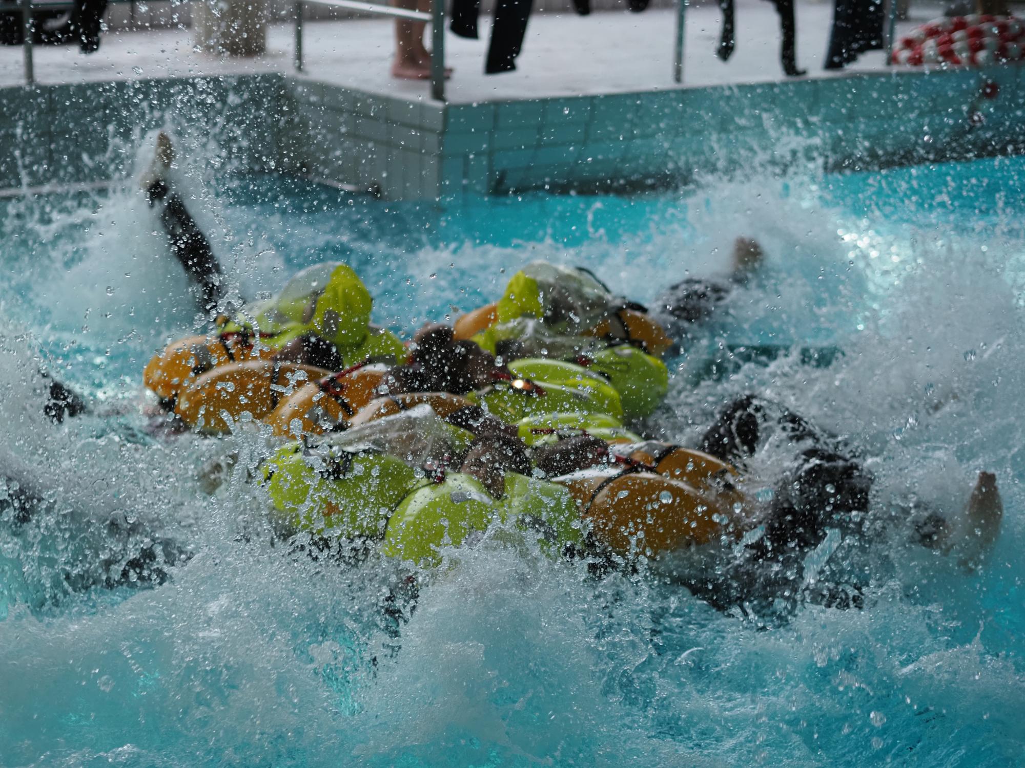 Den Abschluss bildete eine große kombinierte Übung, in der alle zuvor erlernten Inhalte zusammengeführt wurden: vom Sprung ins Wasser über die Rettung von Personen, den Einsatz von Rettungsmitteln bis hin zum gemeinsamen Überleben im Seenotfall. Dabei wurde deutlich, wie entscheidend Teamarbeit, klare Kommunikation und Ruhe in Extremsituationen sind.