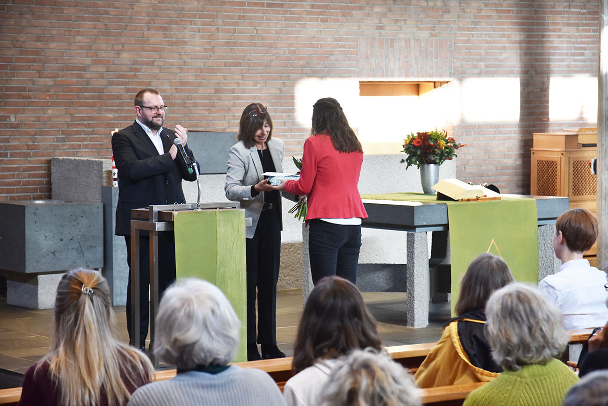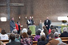 Mit Grußworten und Geschenken schlossen sich an Vertreterinnen und Vertreter der katholischen Geschwistergemeinden, die Bahai-Gemeinde, die Stadt Kleve, der Pfarrkolleg:innen-Kreis aus den 5 weiteren Gemeinden der Region Nord und das Presbyterium der Evangelischen Kirchengemeinde Kleve selbst.