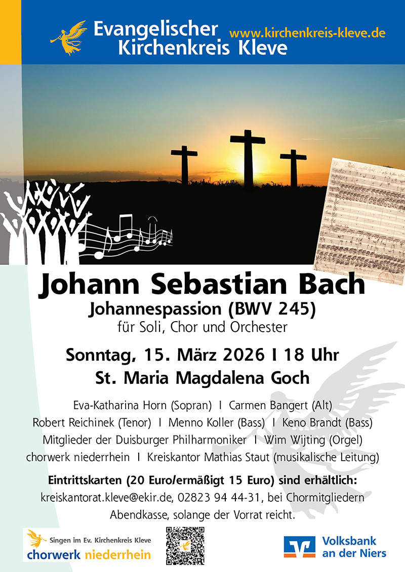 kreiskantorat.kleve@ekir.de, 02823 94 44-31, bei Chormitgliedern, Abendkasse, solange der Vorrat reicht.