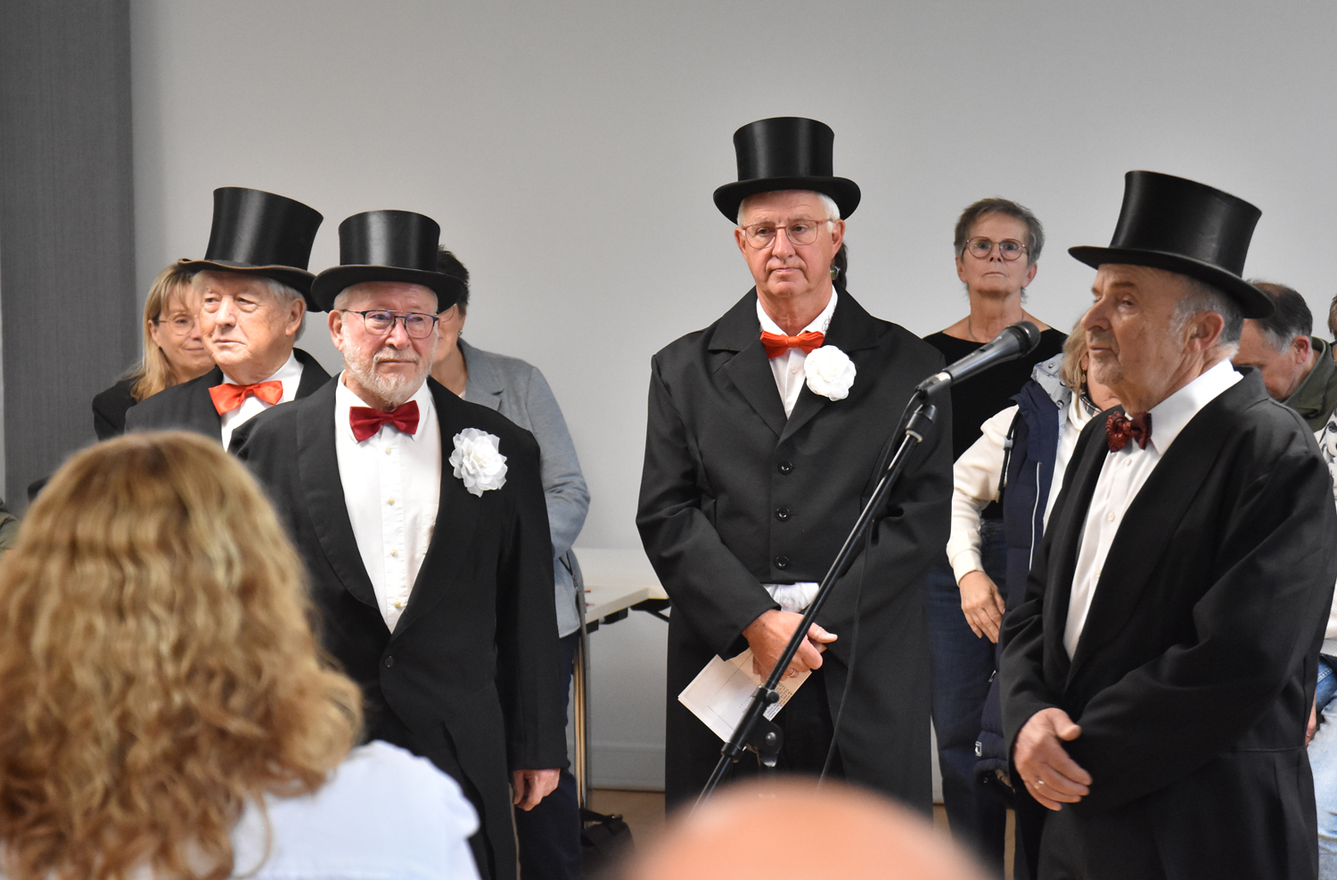 Gerhard Hermsen hat zu Ehren des Kantors im „Issumer Histörchen“ am Rathaus eine Ausstellung eingerichtet, die Dokumente aus 60 Jahren Kantorei zeigt. Darin Konzertplakate, Bilder und Zeitungsartikel, ein karnevalistischer Ko&Ka-Gehrock und ein Issumer Taktstock, der sogar älter ist als die Kantorei. „Um die Ausstellung einzurichten, hat Gerhard Hermsen drei Tage im Histörchen gewohnt“, mutmaßte Sablowski. Einen Taktstock hat Rolf Pester tatsächlich nie benutzt. Er erinnerte die Anwesenden an den unglücklichen Komponisten Jean Baptiste Lully. Vor 335 Jahren rammte sich der Hofdirigent von „Sonnenkönig“ Ludwig XIV. während eines Wutanfalls den schweren Taktstock in den Fuß – und starb an den Folgen der Verletzung.