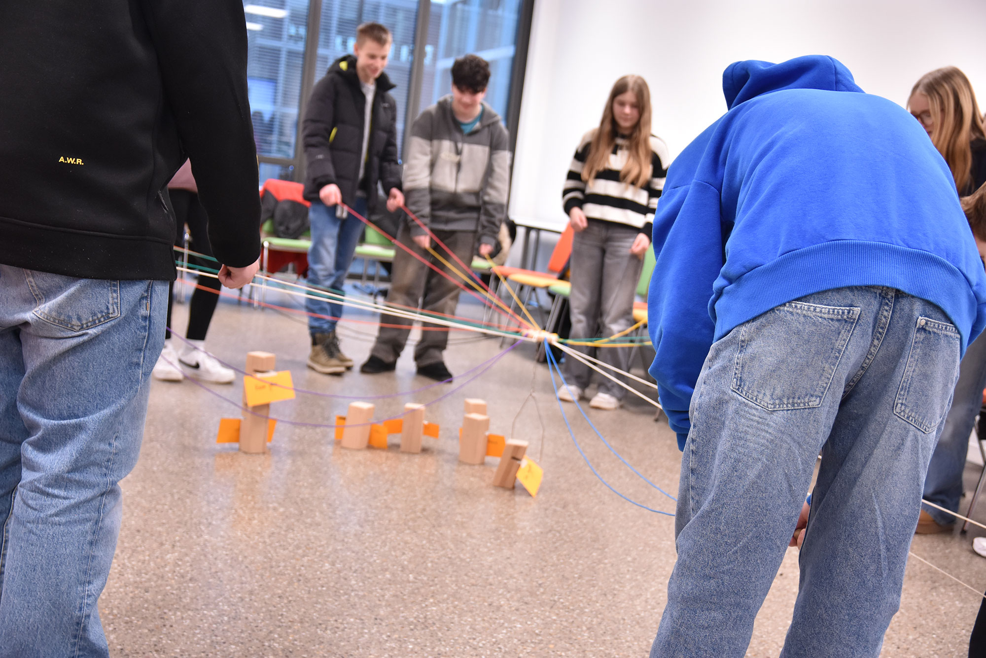 Dass die Diakonie ihrem christlichen Ursprung vor allem durch die Unterstützung von Hilfebedürftigen und Ratsuchenden Ausdruck verleiht, zeigte nicht nur der Jubiläumsfilm „175 Jahre Diakonie in Deutschland“, sondern auch die Workshops mit Diakoniemitarbeitenden. Hans-Dieter Reuter, Verbundleiter der Diakonie-Tagespflegen, legte den Konfirmandinnen und Konfirmanden Gewichte an Arme, Beine und auf die Schulter. Sie simulierten, wie sich Bewegung im Alter häufig anfühlt. Mal fünf Minuten waren kein Problem, dauerhaft wollte es jedoch keiner der jungen Leute tragen.