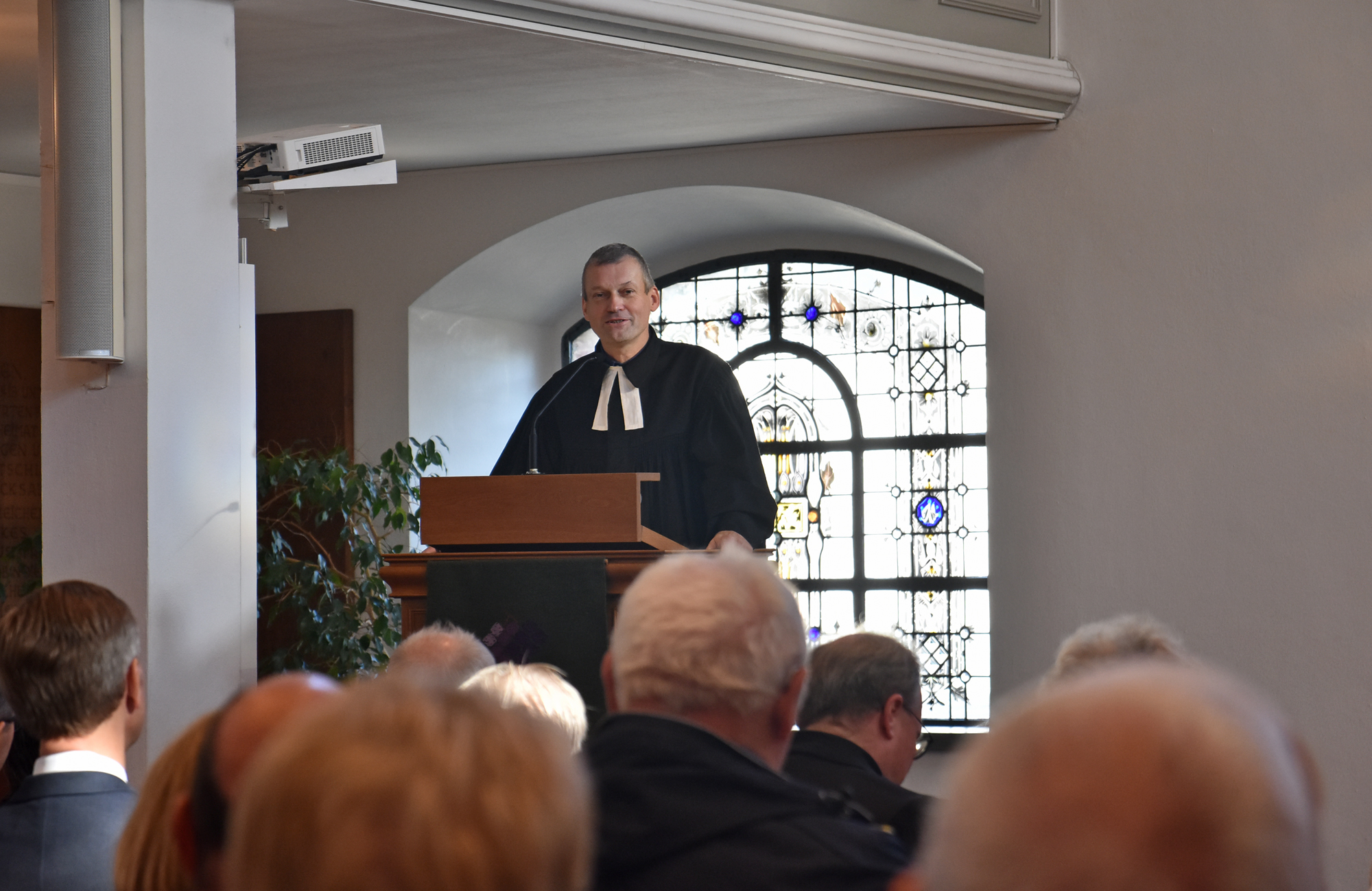 Sechs Jahre war Holstein in Antwerpen für deutschsprachige Gemeinde in der Provinz Antwerpen zuständig, einer Auslandspfarrstelle der Evangelischen Kirche in Deutschland. Also wieder ein neues Eingewöhnen. „Bei unserem ersten Treffen viel mir sofort dein strahlendes Gesicht auf“, sagte Superintendent Pfarrer Robert Arndt in seiner Ansprache. „Im Gespräch wurde mir auch deutlich, da ist einer, der weiß was er will und was er kann.“ Mit der Einführung wurde Holstein an sein bei der Ordination gegebenes Versprechen der öffentlichen Verkündigung und Seelsorge erinnert. Die Gemeinde wurde gebeten, den 58-Jährigen in seinem Dienst zu unterstützen.