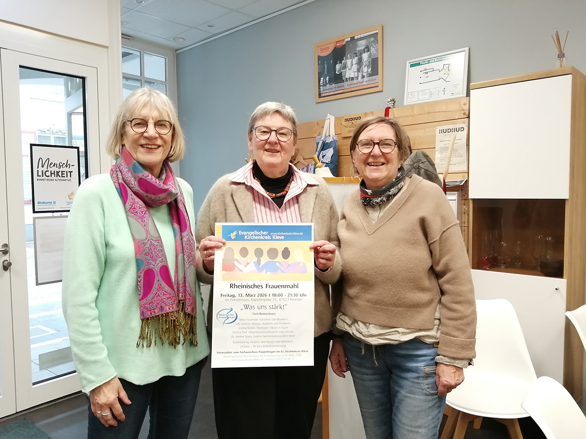 Anmeldungen sind per E-Mail bis zum 6. März möglich unter anmeldung.kkkleve@ekir.de oder telefonisch unter 02823 94 44-31. Die Entrichtung des Kostenbeitrags inklusive Essen und Getränken erfolgt nach Selbsteinschätzung in einer Spanne von 29 bis 45 Euro. Entsprechende Kontodaten werden nach der Anmeldung mitgeteilt, sie wird mit Überweisung des Kostenbeitrags verbindlich.